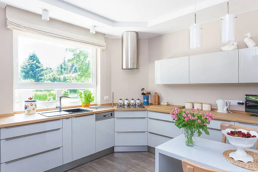 Выбор конфигурации кухни с белыми фасадами зависит от размера помещения и планировки.