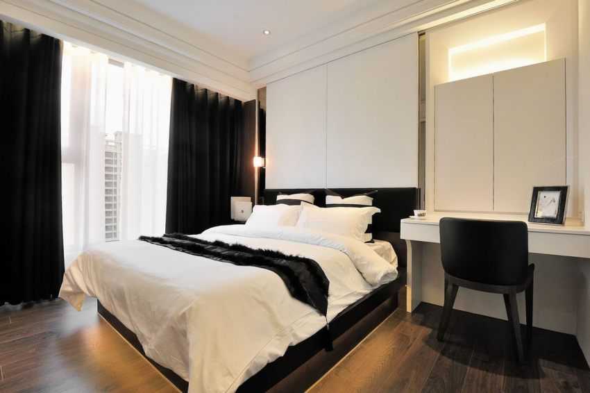 - Контрасты для зонирования пространства. Например, для кровати используются более темные тона, сразу за изголовьем можно устроить неглубокую нишу с подсветкой, но без остального декора. Это зрительно выдвинет стену, придаст помещению эффект большой комнаты.