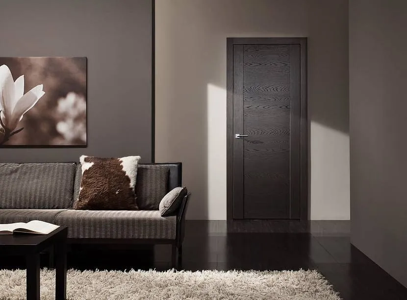 В большой комнате можно смело использовать двери темных оттенков серого. Они придадут помещению объем, глубину и чарующую атмосферу.