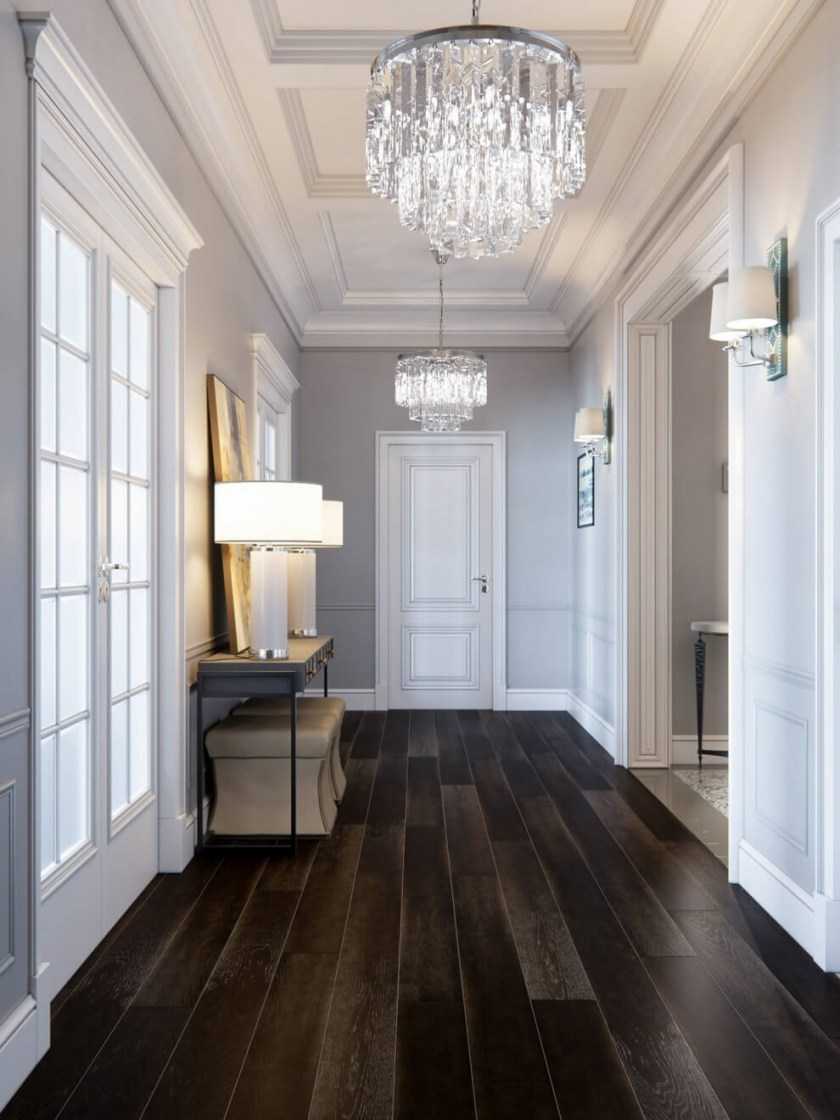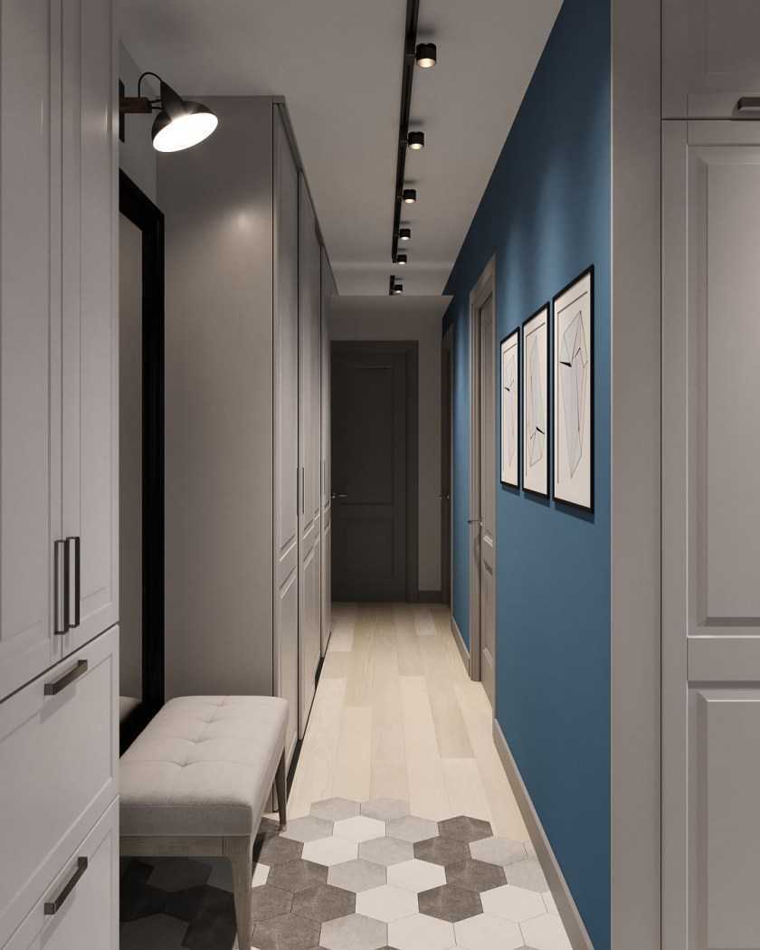 Темные, холодные цвета сделают коридор мрачным и даже могут визуально сделать его еще меньше. Для такого цветового решения требуется особый сценарий освещения.