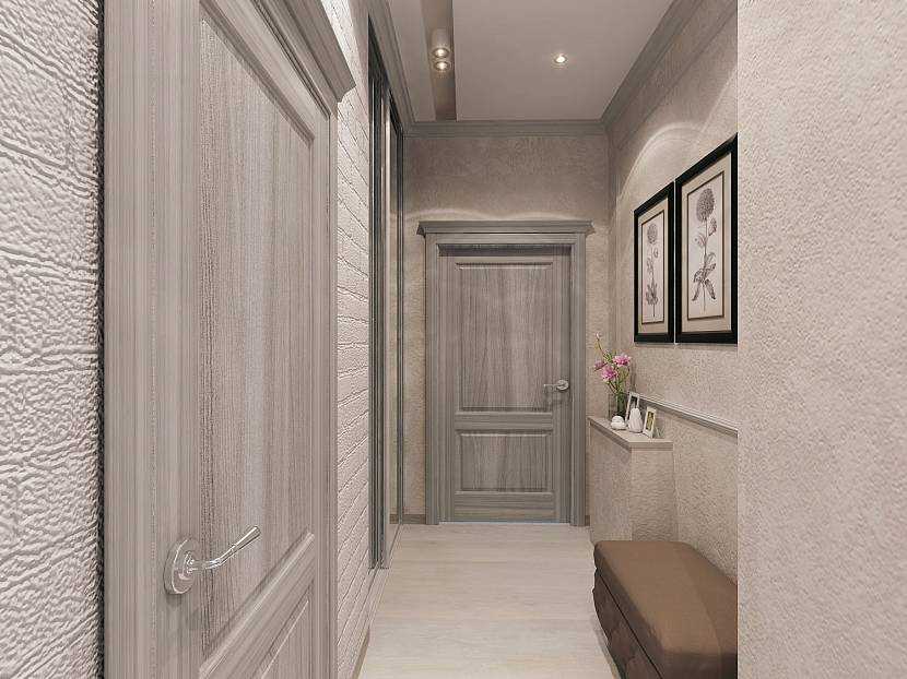 Настроение коридора зависит от цветовой температуры выбранных тонов. Уютный, домашний интерьер получится при соединении светлого грибного с теплым персиковым. Сочетание холодного стального с нейтральной пыльной розой привнесет в дизайн нотки роскоши.