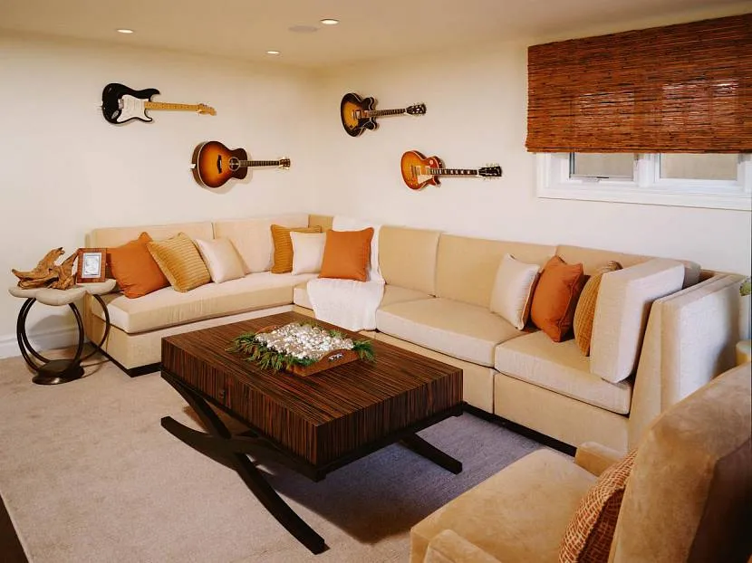 Благодаря акцентной облицовке, возможно зонирование гостиной на иные по предназначению площади, визуальное увеличение или уменьшения пространства помещения, внесение яркого акцента. Наиболее популярными методами акцентирования стены над диваном являются: