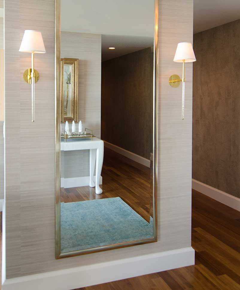 Помимо визуального расширения пространства подсветка зеркала помогает при сборах и оценке собственного вида перед выходом из дома. Правильно освещенное зеркало способно поднять настроение: человек видит себя красиво, опрятно одетым. Лампы не должны создавать бликов, теней. Обычно зеркало подсвечивается либо сверху, либо сбоку с обеих сторон: в этом случае свет равномерен, не искажает изображение. Лучше выбирать лампы теплых тонов, чем холодных.