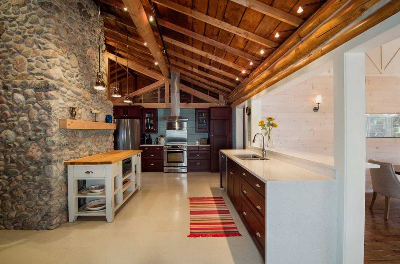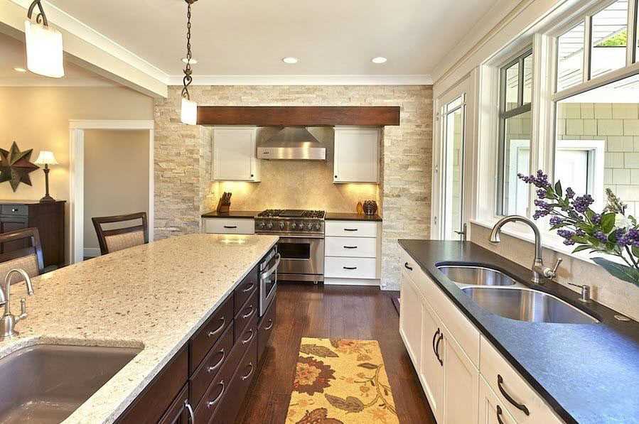 Выделяйте кухонную зону отделочным камнем с текстурой крупного песчаника
