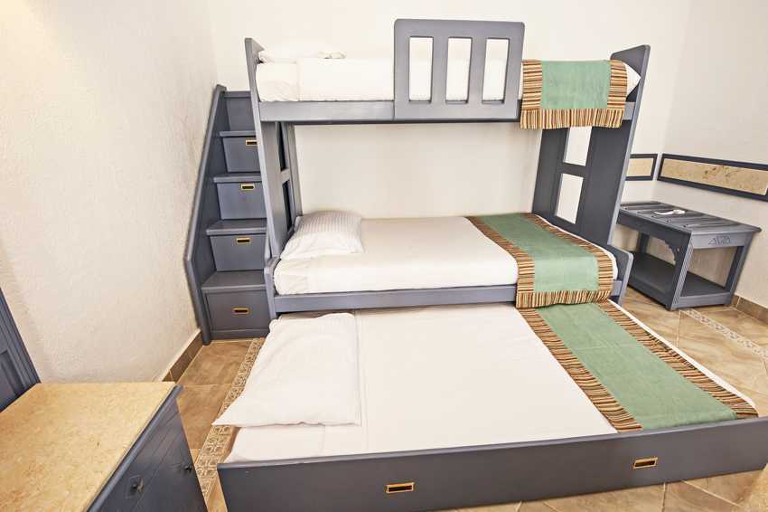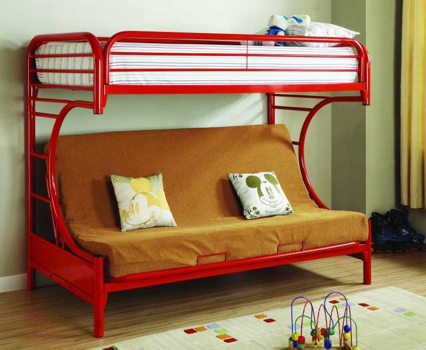 Сделайте двухэтажный домик для супер-героя. На втором этаже поставьте две двери, спереди и сбоку и все на замочках. Сыночек ни за что не откажется от такой кровати.