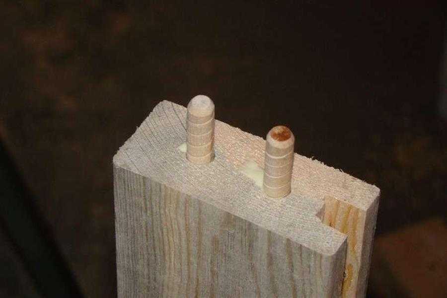 Соединение деталей выполняется при помощи шкантов и столярного клея: