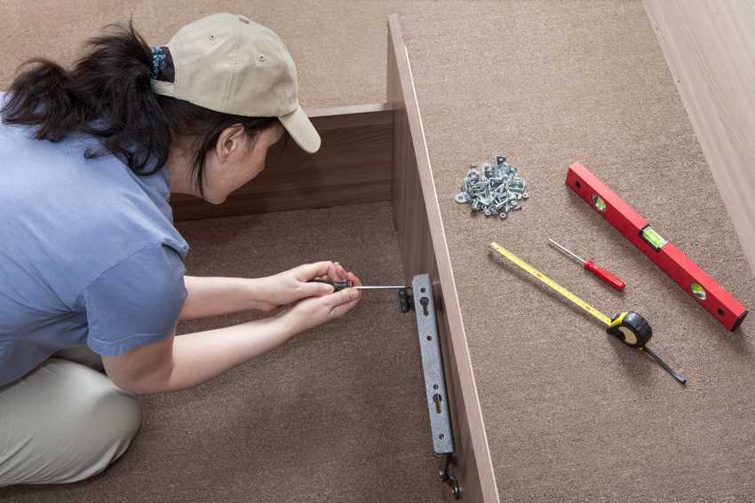 - Соединяют детали в единую конструкцию с помощью мебельных уголков и саморезов.