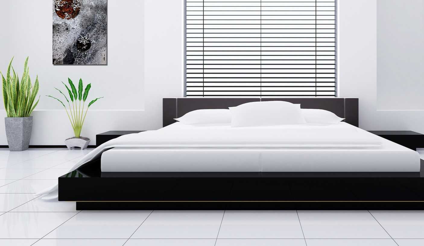 Черная кровать будет стильно смотреться в интерьере белой спальни