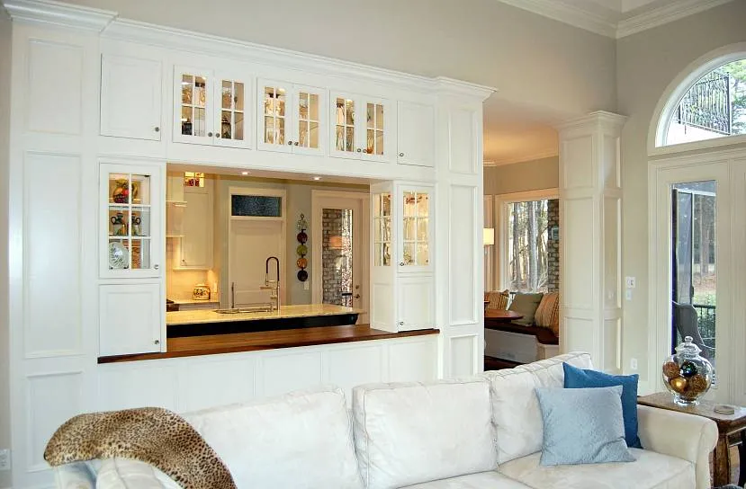 Прямоугольные или дугообразные проемы, не скрадывающие площадь помещения, наделяют обстановку своеобразным лоском, добавляют интересной изюминки, а также одновременно зонируют пространство и в то же время объединяют его.