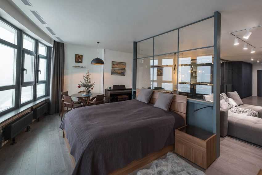 Гипсокартоная перегородка со стеклянными окнами визуально делает комнату больше и светлееИсточник design-homes.ru