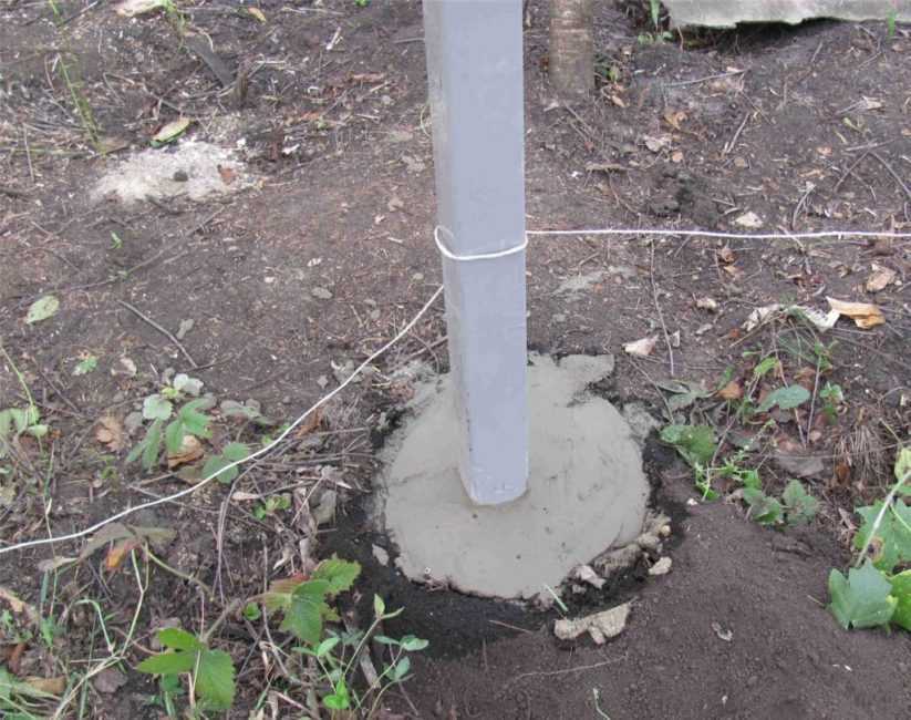 Ставят трубы-стойки и выравнивают при помощи уровня