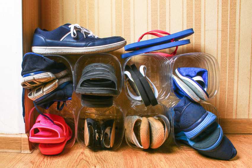 Обувные полки можно изготовить из пластиковых бутылок