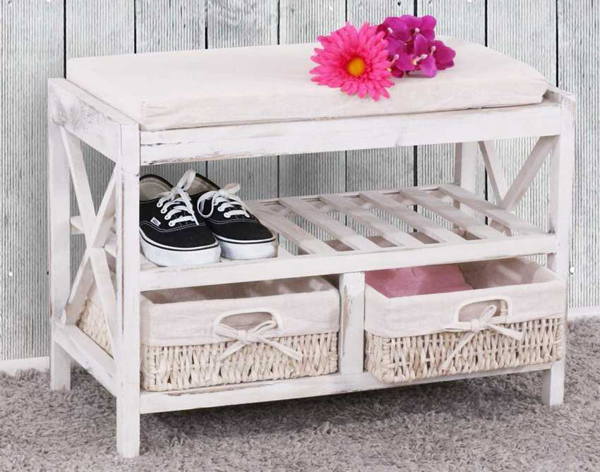 Полка под обувь с сиденьем является простой и удобной конструкцией