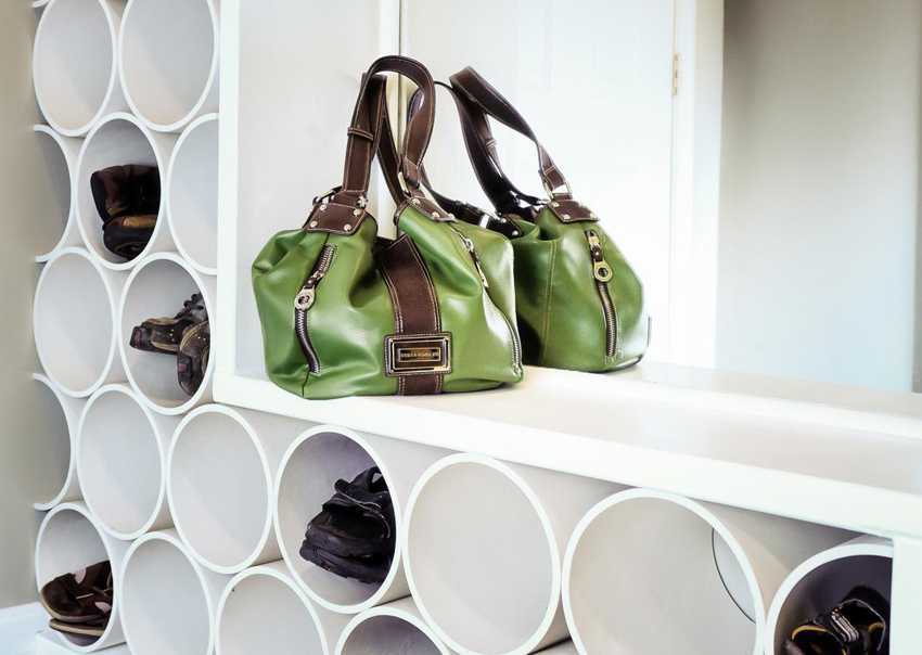 Полки для обуви из труб ПВХ получаются интересными и оригинальными