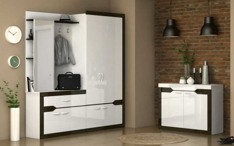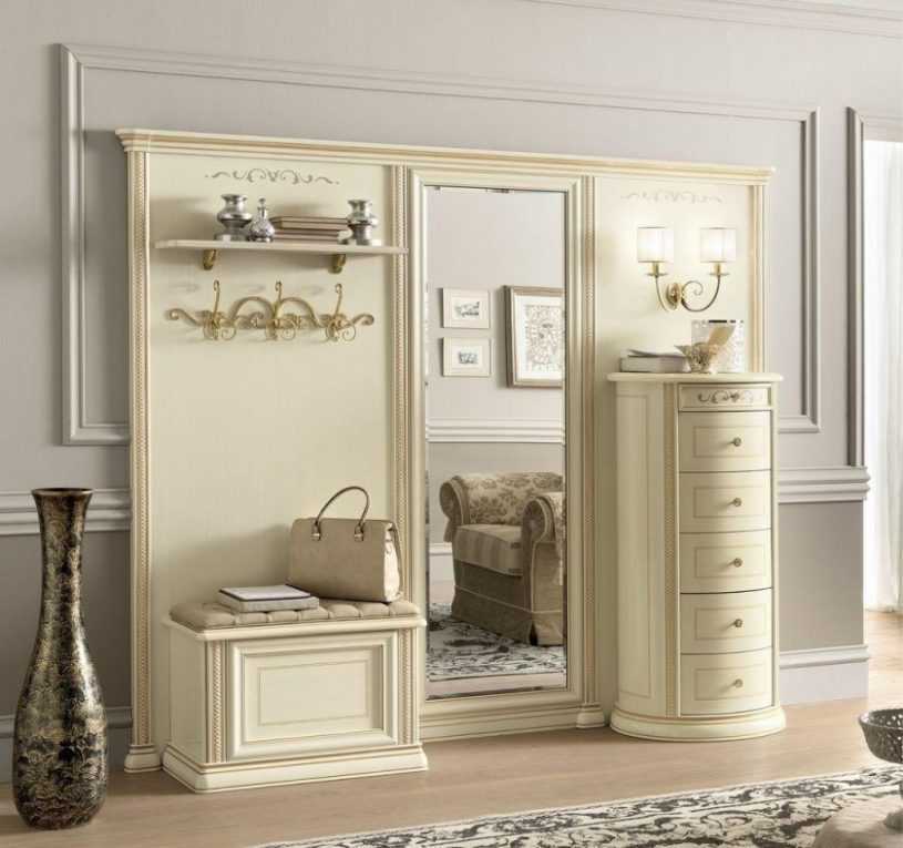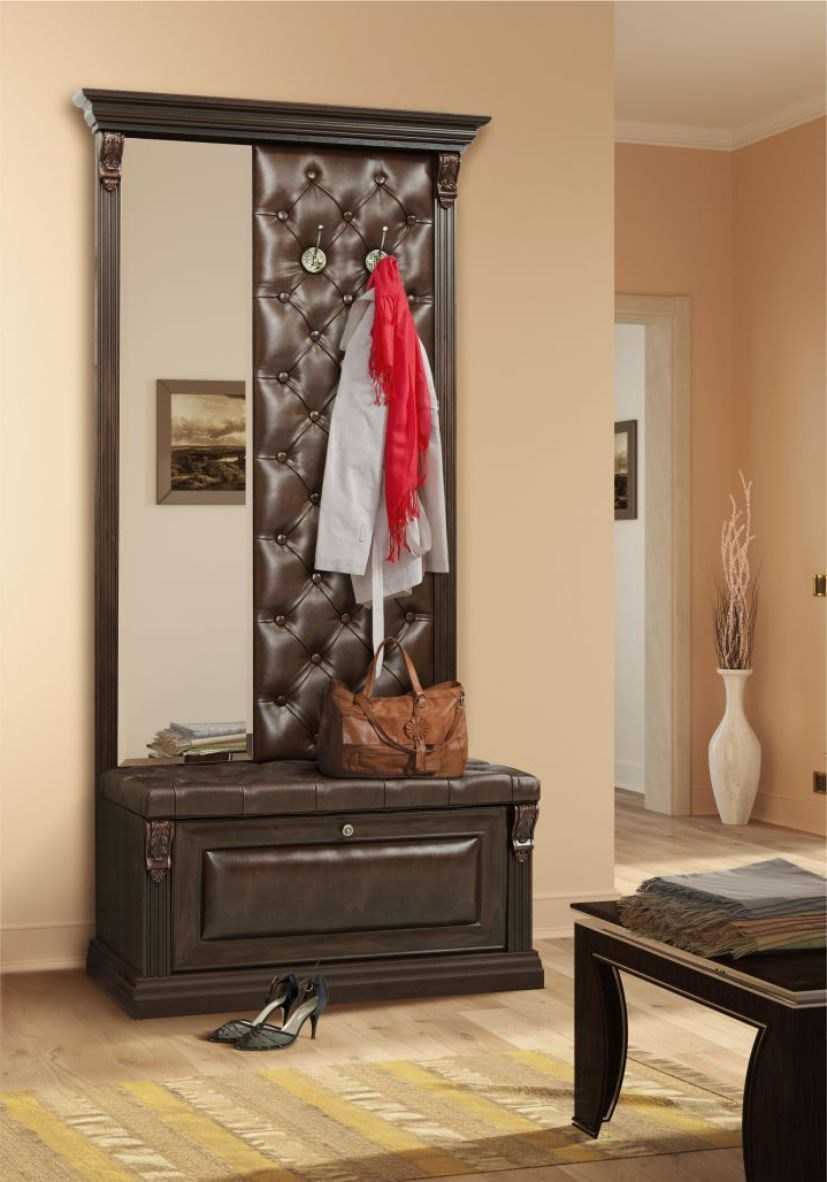 Довольно востребованным решением считаются изделия, дополненные с помощью зеркала, крючков для одежды, держателя для зонтов и прочих элементов. Например, максимально практичный вариант, представляют собой модели с обувницей, банкеткой, пуфиком или даже с небольшим диваном, которые предоставляют правильное хранение обуви, а также облегчают процесс переобувания.