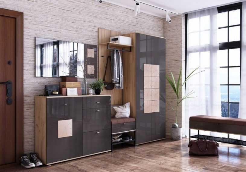 Ищете предмет мебели, который выполняет сразу несколько функций? На рынке вы найдете интересные решения в виде шкафов, соединенных со скамейками с помощью стены, на которой уже есть вешалка и зеркало. Такой комплект идеально подойдет, если серая прихожая не слишком просторная, и вы хотите, чтобы она оставалась функциональной.