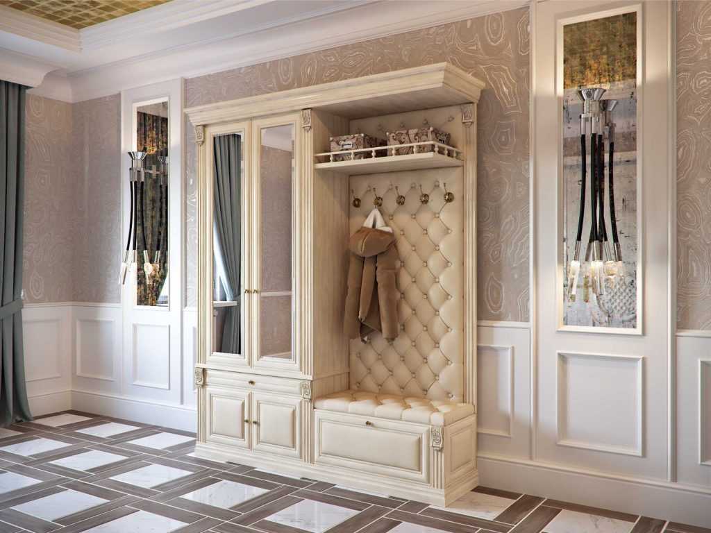 Интерьер прихожей в классическом стиле в квартире имеет следующие характерные особенности: