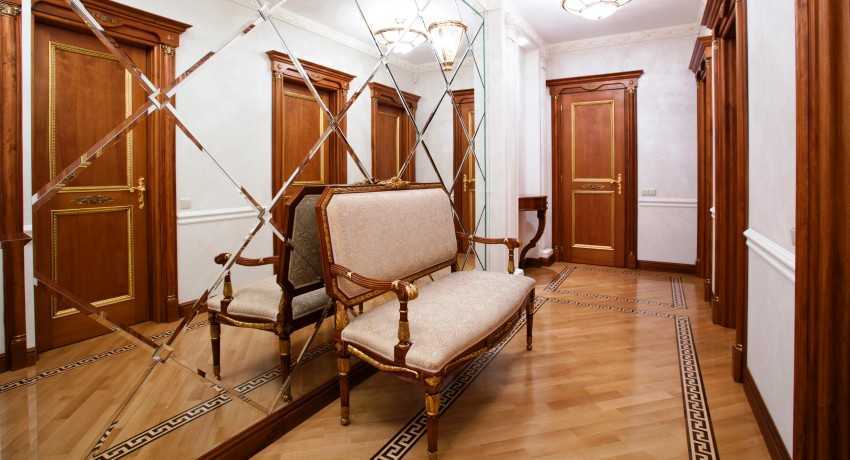 - Простор. Чаще всего в классическом стиле оформляют большие помещения — они выглядят наиболее гармонично. Если вы планируете отделку маленькой комнаты, пользуйтесь секретами визуального расширения — светлые оттенки, зеркала.