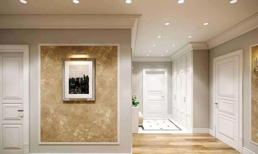 Более выгодно классический дизайн можно воплотить в коридорах квадратной или прямоугольной формы