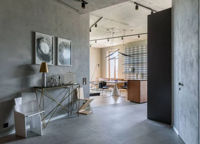 Цветовая гамма может быть как темной (серой, терракотовой), так и светлой (белой с контрастными деталями). Особую роль играет декор: грубо сколоченный ящик вместо обувницы, дорожные знаки вместо картин, фонари вместо светильников.