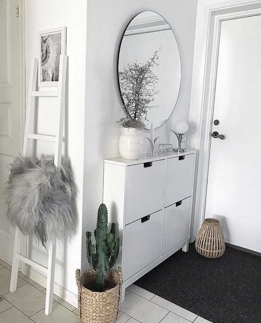 Для маленькой белой прихожей можно подобрать любую современную стилистику. Здесь отлично будет смотреться минимализм, хай-тек и модный скандинавский стиль.