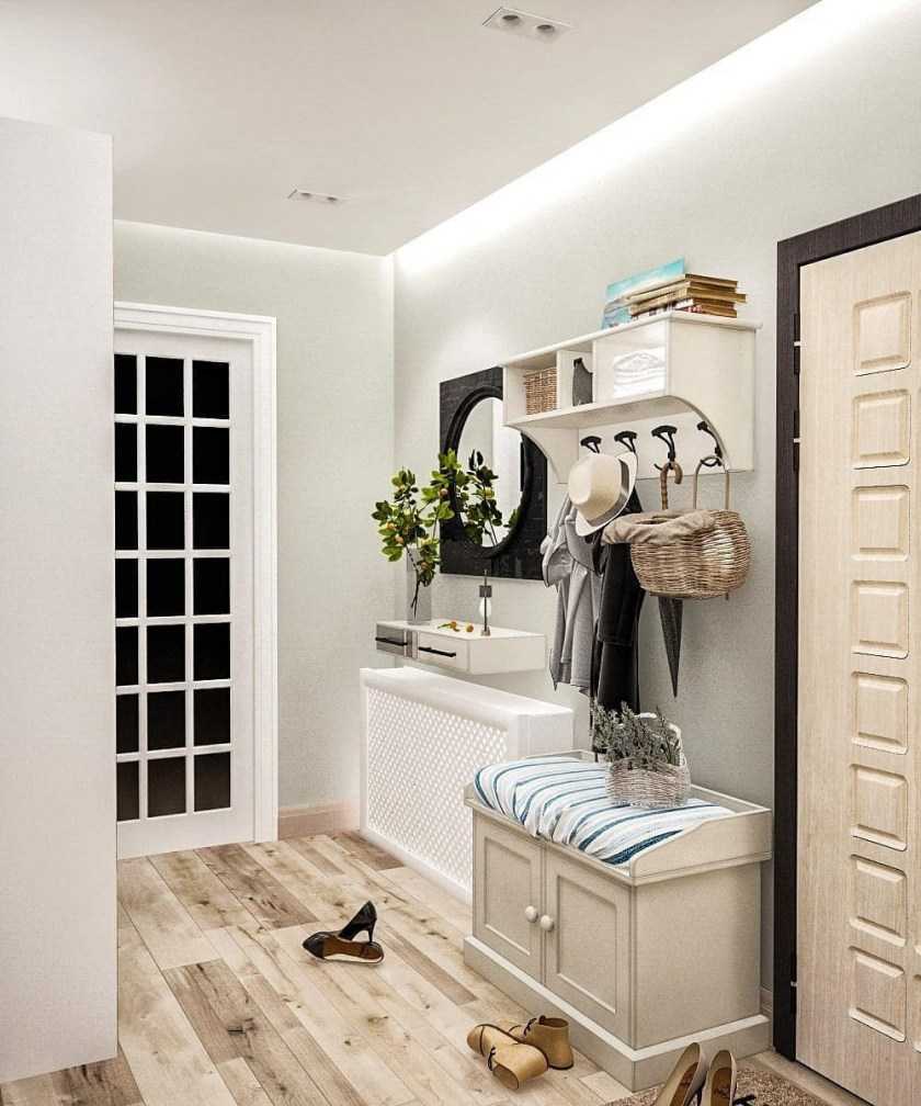 Для модернового интерьера можно подобрать красивую металлическую вешалку, напольное зеркало и яркий пуф. Для скандинавского – небольшой функциональный шкаф с отделением для обуви и настенное зеркало. Для хай-тека – шкаф-купе с зеркальной поверхностью, блестящую металлическую вешалку и кресло в футуристическом стиле.
