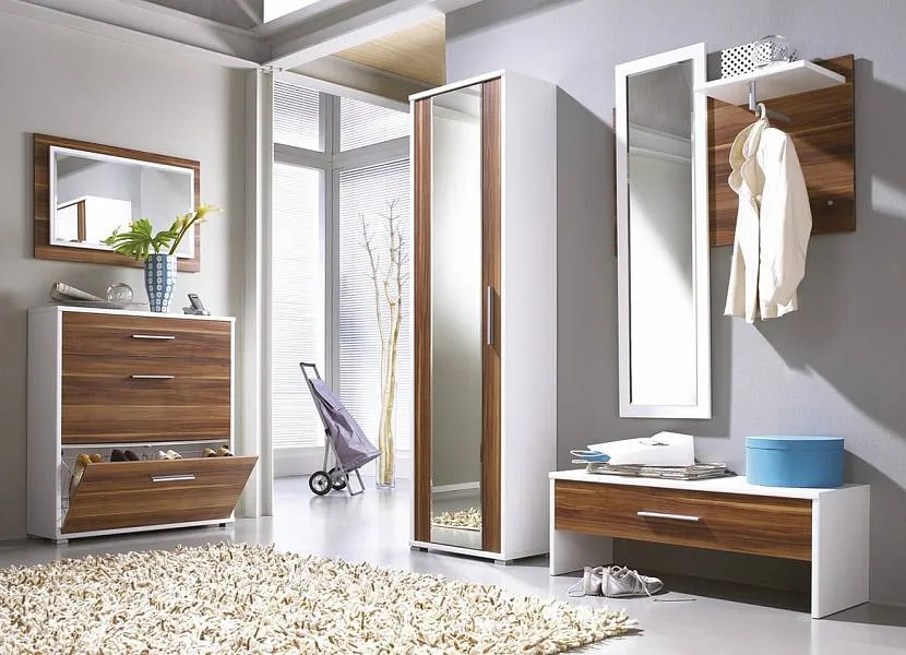 Подбор и установка предметов мебели играет важную роль в дизайне и функциональности любой прихожей. Зеркальные поверхности гарнитура визуально расширят помещение, усилят уровень освещения и уменьшат потребность в светильниках. Подобного эффекта можно также добиться с помощью глянцевой мебели.