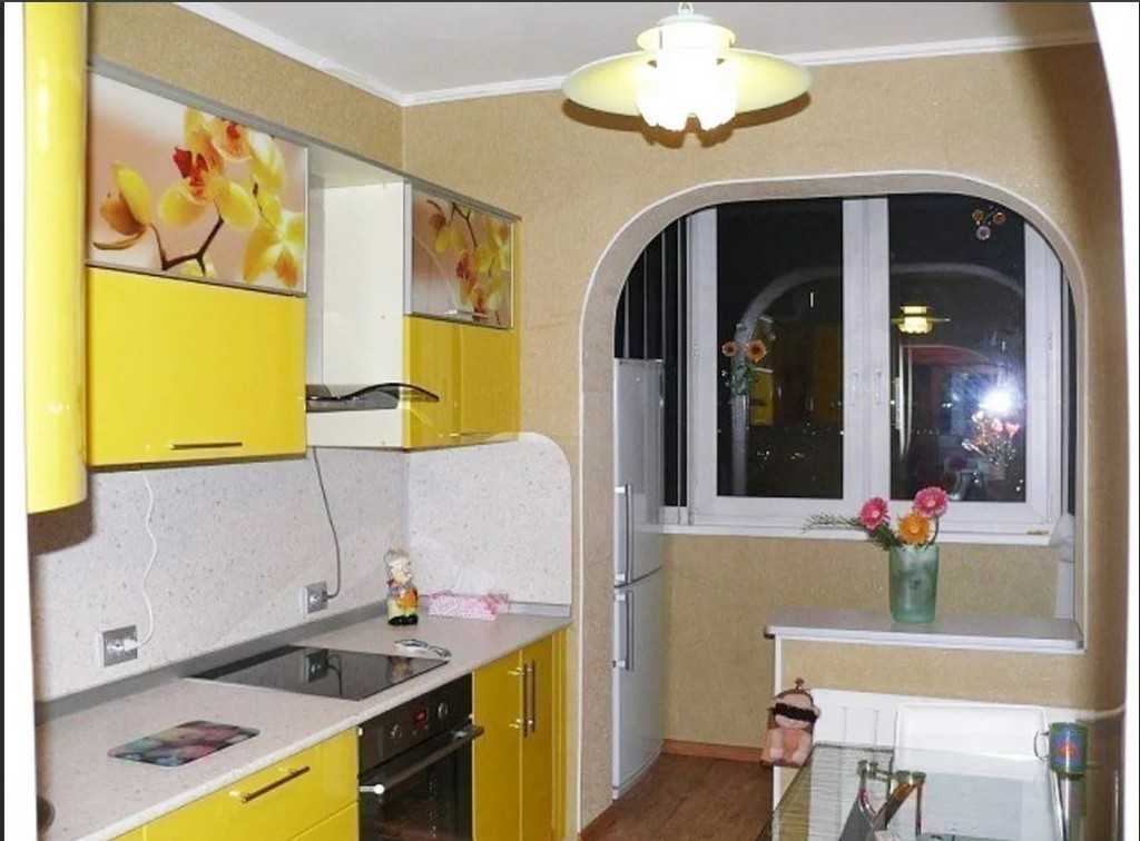 Если сил и времени на то, чтобы убрать окна и балконную дверь, хватает, можно объединить кухню с лоджией частично. Большой плюс — разрешение получать не нужно, а функционал остается полным. Более того, красивая полукруглая арка смотрится даже эффектнее, чем полное отсутствие стены.