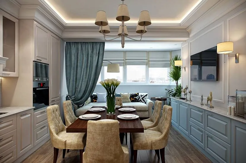 В последнее время все чаще и чаще можно встретить идею соединения кухни и гостиной. Благодаря такому подходу увеличивается пространство. Однако далеко не все хозяйки согласны мирится с тем, что запах от продуктов и пар от приготовления еды разносится по всему дому. Как бы там не было, дизайнерские решения не перестают нас удивлять. Популярным для многих проектов по перепланировке становится совмещение кухни-гостиной с балконом.