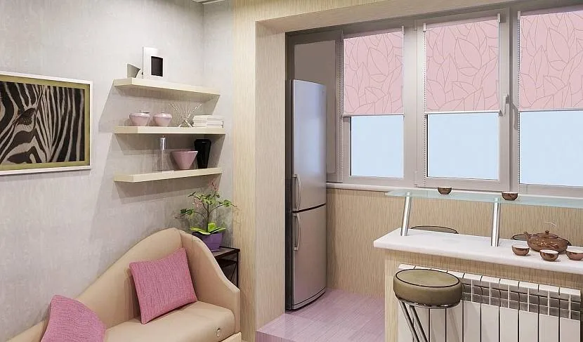 Объединенную с лоджией кухню можно использовать не только по ее прямому назначению, но и воплощать в реальность оригинальные задумки.