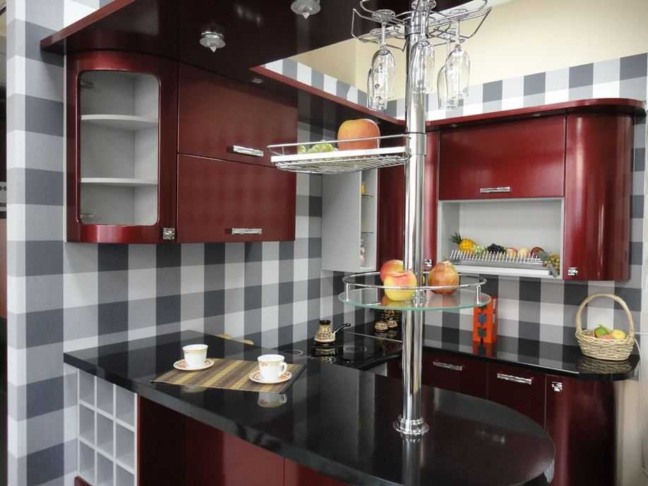 - бордовый – выразительный, но в то же время умиротворяющий оттенок будет удачно смотреться на любой кухне, лучше всего сочетается с черным, белым, серым и бежевым;