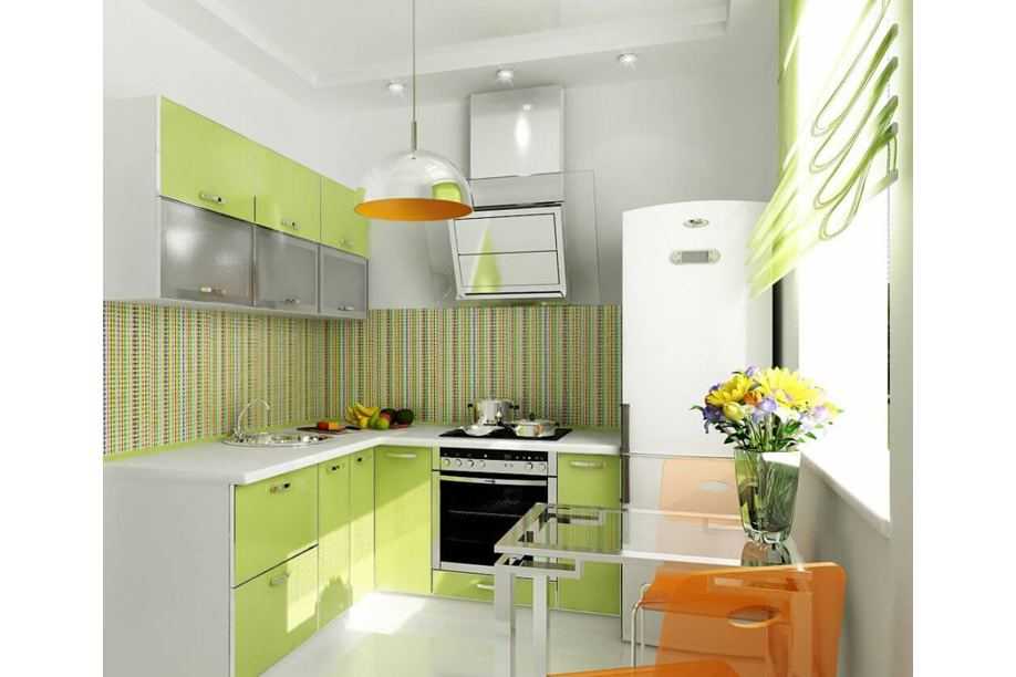 - зеленый – популярный оттенок для кухни в современном стиле, приветствуется светлая однотонная палитра.