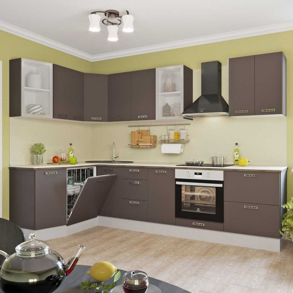 - планировку (угловая, прямая, П-образная, с островом). Продумайте заранее, из каких модулей будет состоять гарнитур: нужны ли высокие шкафы для строенной техники, вместительные пеналы, стеклянные шкафы-витрины, выдвижные ящики и др.;