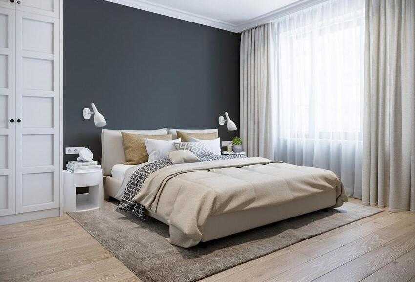 Притом кровать рекомендовано поставить к нейтральной стене, а телевизор в спальне повесить на акцентную стену.