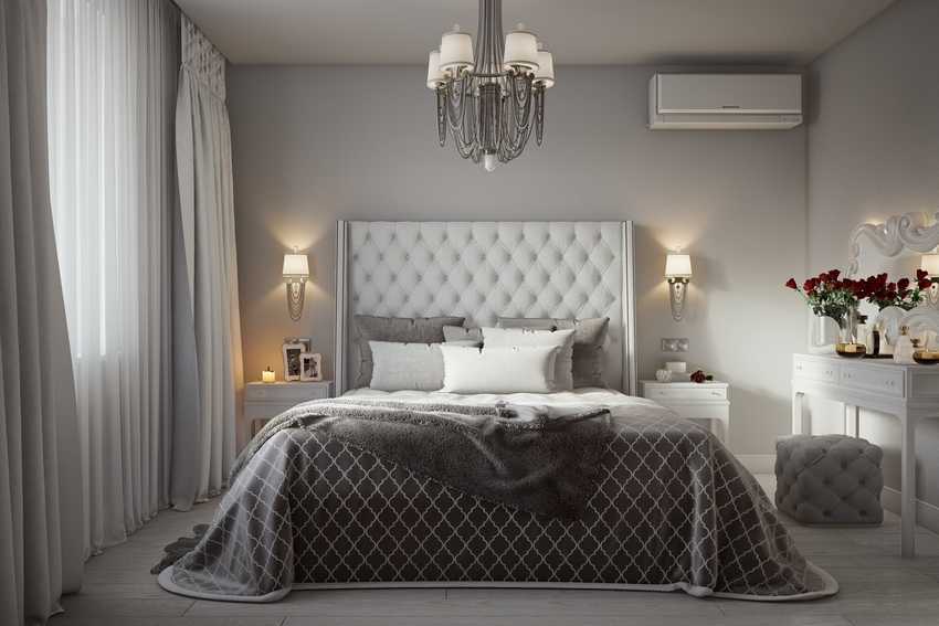 Серые тона в интерьере могут использоваться в различных вариациях, исходя из того, какого эффекта требуется добиться для спальни.