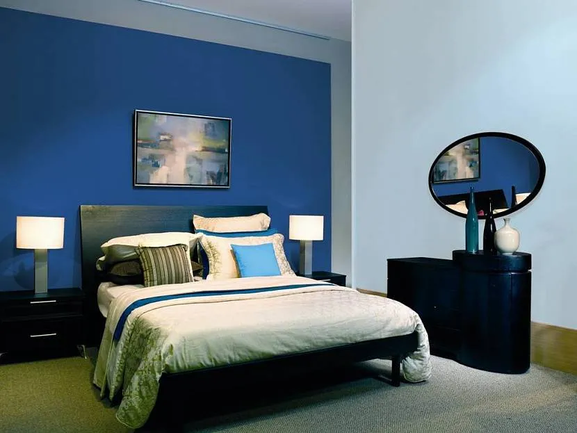- Синий цвет в спальне создает усыпляющую атмосферу;
