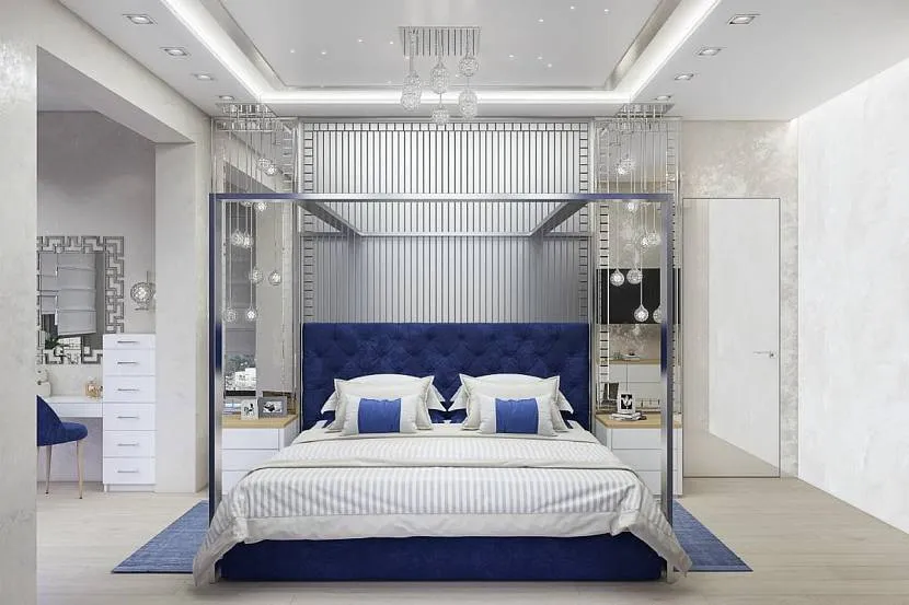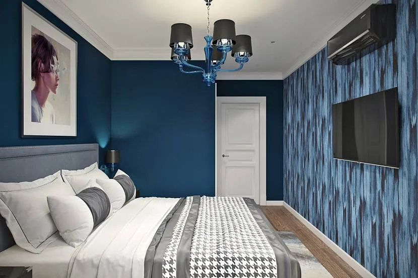 Синяя спальня – это не обязательно помпезная, но скучная классика. Есть и другие варианты использования этой палитры в интерьере: