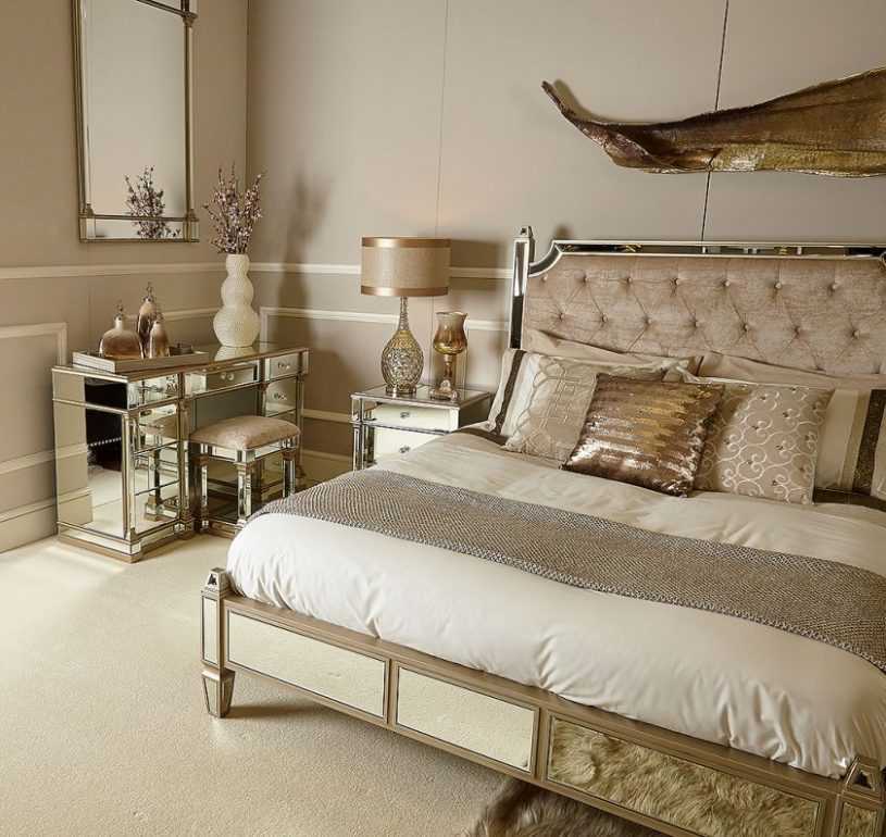 Интересный эффект получится, если разделить зеркала вдоль — вариант для низких потолковБольшая зеркальная поверхность помогает визуально расширить помещениВ спальне будет светло от отраженного света