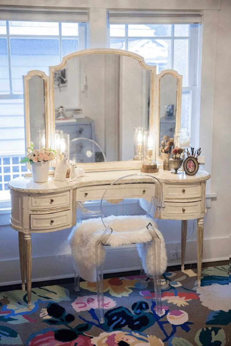 - Холерику надо воспользоваться ярким эффектным или, наоборот, белоснежным предметом мебели. Фото трюмо с зеркалом в спальню предлагают много таких вариаций с приятной подсветкой.