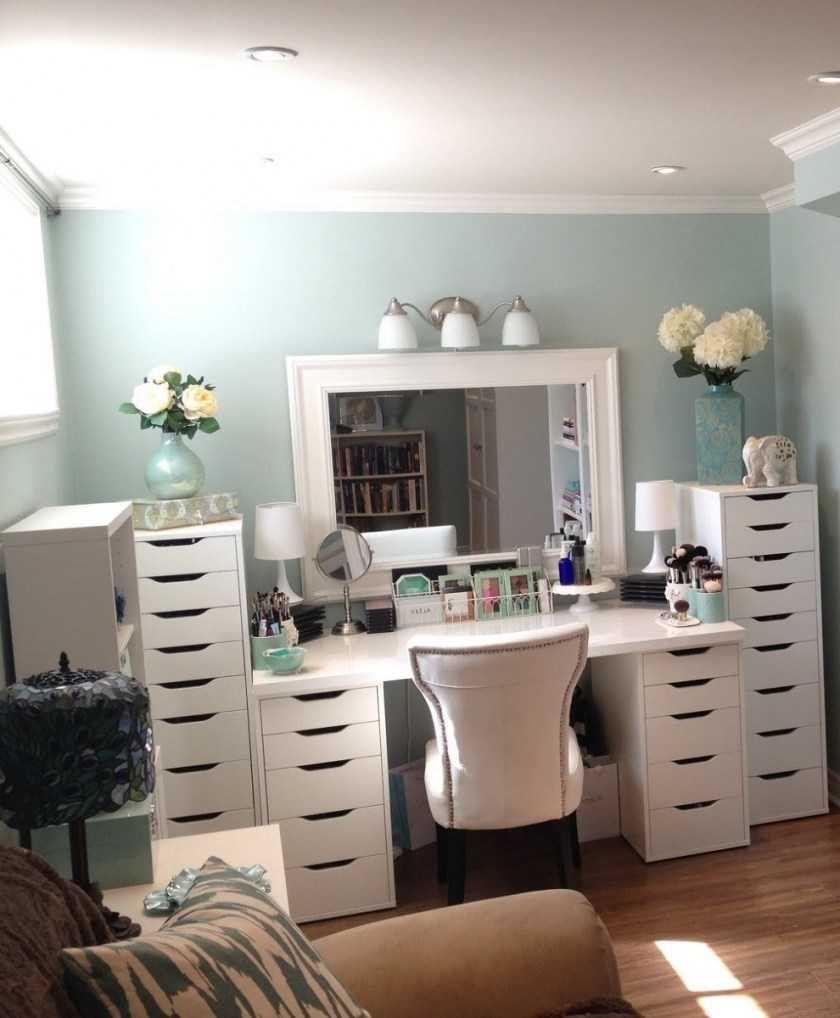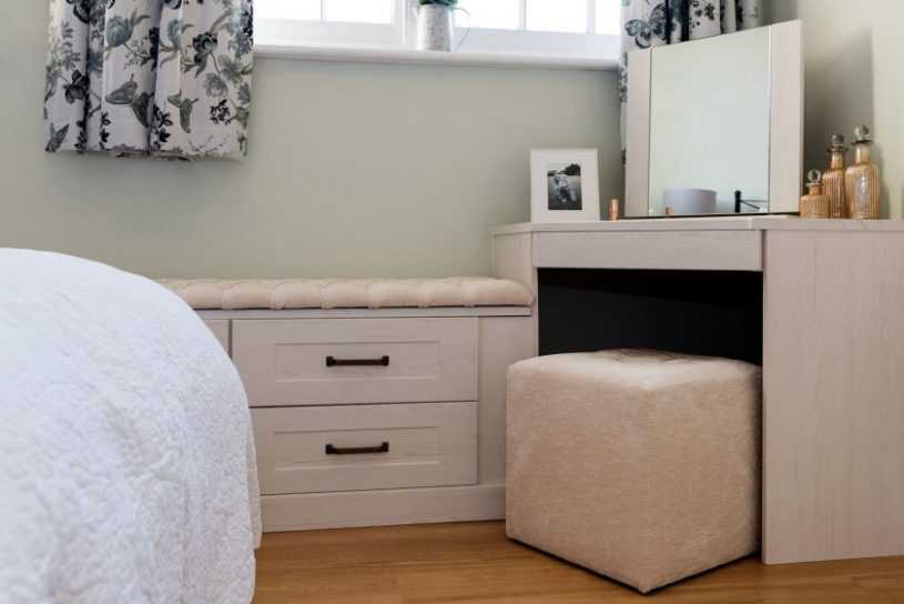 Конечно, в первую очередь меблировка обязана поднимать настроение жильцам, отвечая всем их запросам. Частый приём, с успехом применяемый на сегодняшний день в малогабаритных квартирах – шкаф с туалетным столиком для спальни. Встроенный элемент даёт великолепный шанс максимально расширить пространство, не загромождая его и поддерживая чистоту.