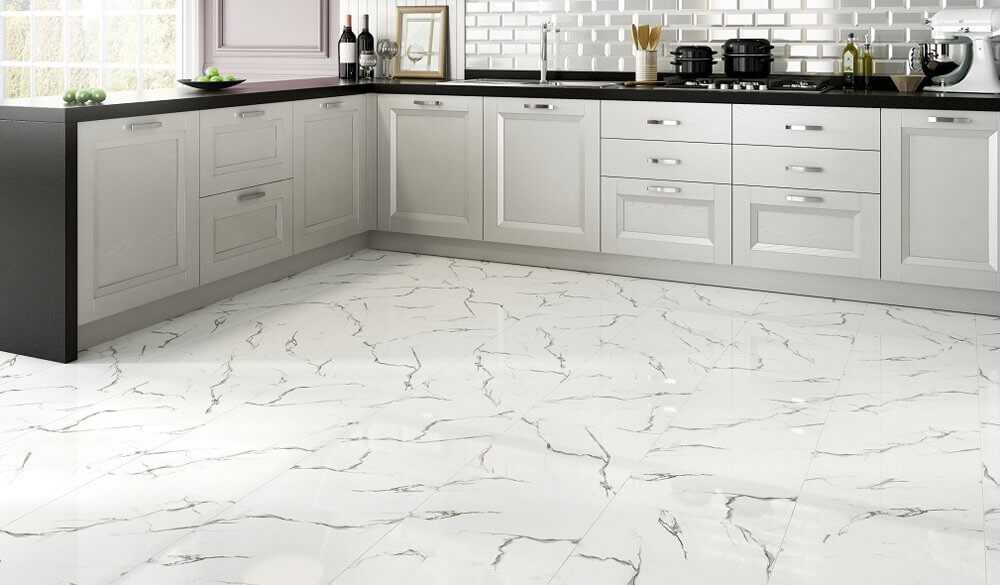 Керамическая плитка максимально практична и устойчива ко всем типичным кухонным нагрузкам. Но ее сложнее укладывать и она холодная сама по себе.