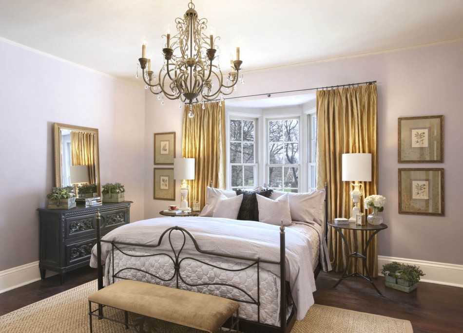 Классика — это строгость и симметричность, которую можно обыграть на современный лад. Пастельные тона, зеркала и витражи для визуального расширения пространства, натуральные отделочные материалы, натуральное дерево, кованые изголовья. Основной акцент делается на кровать, вокруг которой затем обыгрывают остальную обстановку. Здесь нет кричащих тонов и ярких переходов, зато может присутствовать золото и предметы, олицетворяющие роскошь — статуэтки, вазы, камень, роспись на стенах. На потолках — нависающие люстры, на стенах — бра и торшеры.