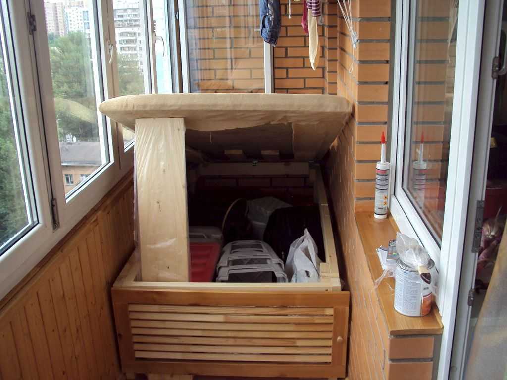 Хорошим дизайнерским решением будет оборудование встроенных шкафов, основанием которых будут стены балкона. Перед началом отделки стен надо отступить 50 см. Это расстояние будет обеспечивать глубину шкафа. Но можно оборудовать шкаф и поверх облицовочного материала.