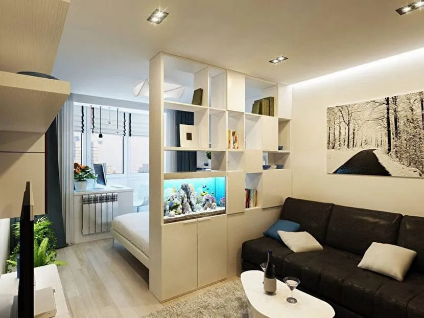 Спальня и гостиная, разделенные перегородкойИсточник sdelaydom-sam.ru