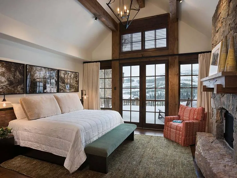 Аксессуары должны ассоциироваться с деревней, лесом, природой. В шале можно использовать атрибуты успешного охотника: ружье, рога лося и тому подобные. В других стилях обязательны абажуры, картины из засушенных листьев и цветов, натуральных материалов. По столикам и тумбочкам расставьте неяркие вазочки с засушенными цветами. Хорошо смотрится большое количество подушечек на кровати и креслах.