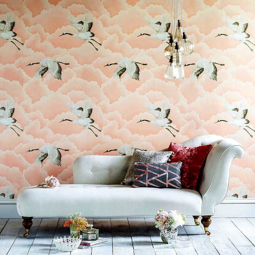 Ярко и эффектно смотрятся розовые обои на тему животных или растений
