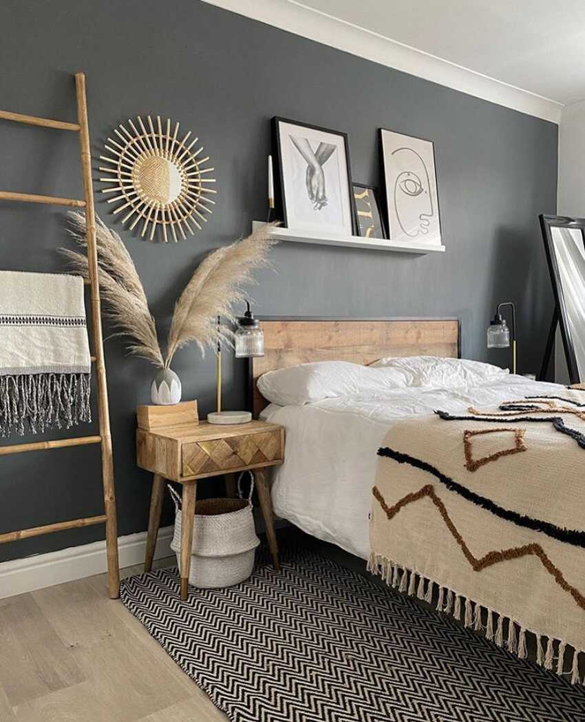Натуральные обои – великолепный, экологически чистый материал, с помощью которого можно создать модный в 2021 году дизайн спальни в эко-стиле (как на фото). Обои можно комбинировать, создавая очень оригинальный, интересный, но при этом уютный, комфортный интерьер.