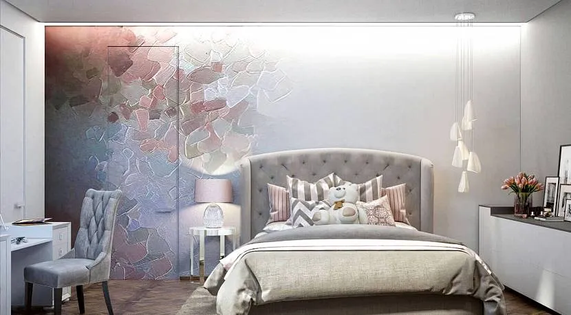 Классический тандем теплого серого с розовым сделает дизайн спальни по-настоящему уютным, нежным и романтичным. Лучше если розовый будет использоваться в качестве акцентных деталей таких, как подушки, аксессуары или картины.