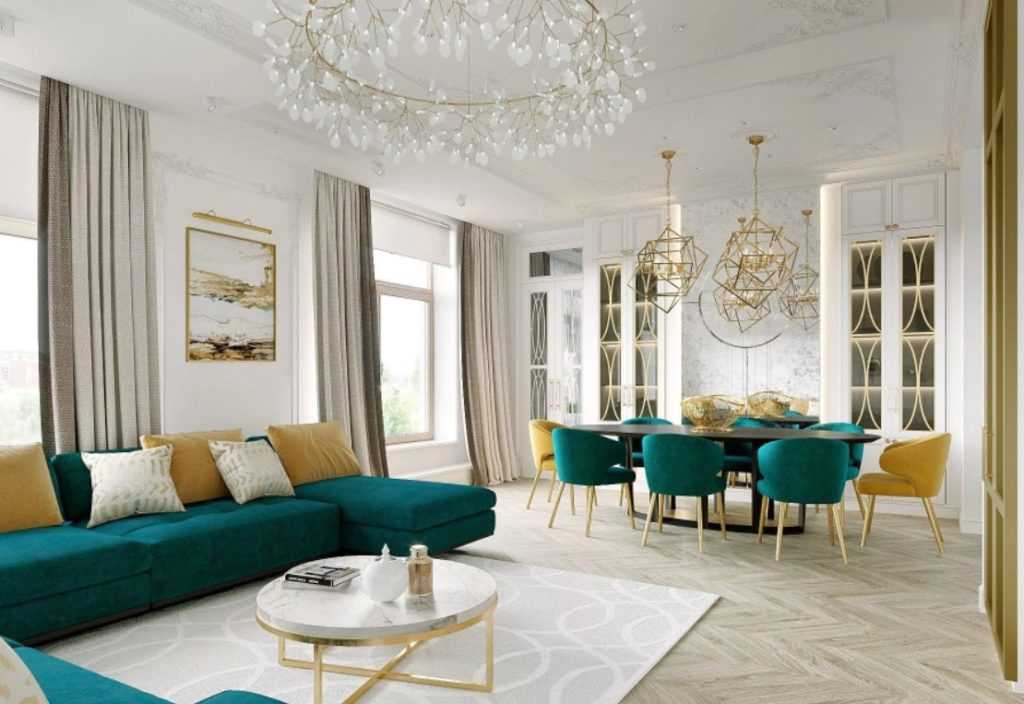 Подбирая шторы под зеленый диван в гостиной, нужно учитывать: