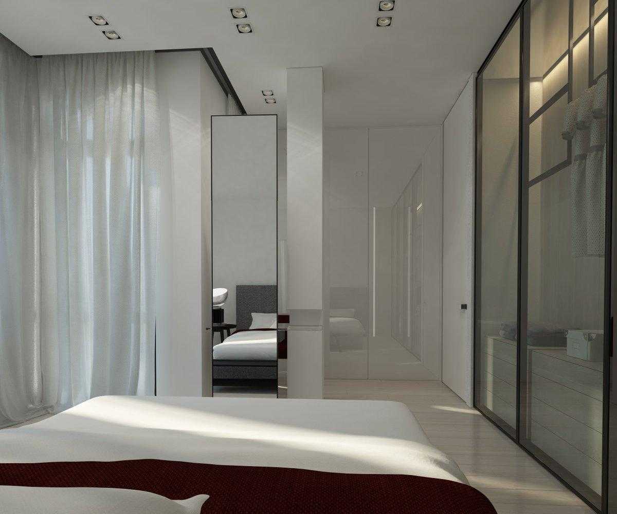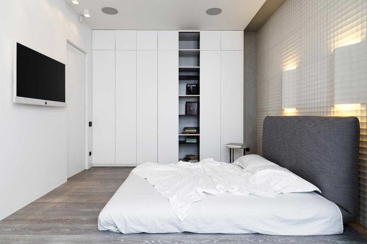Маленькая спальня 21 века — это четкие графические линии, спокойные тона и никаких лишних предметов.